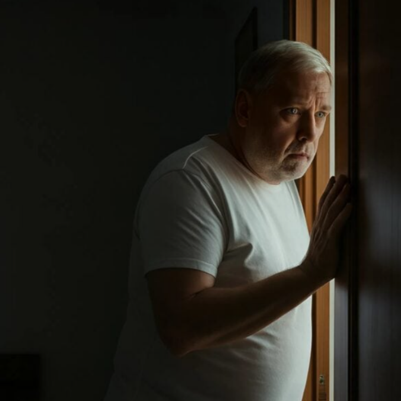 I slipped out of bed, the old floorboards creaking slightly under my 65-year-old frame. I eased the door open just enough to see into the hallway. A faint light spilled from the kitchen.
