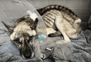 It was a heartbreaking sight—a dog collapsed in the street, wearing only a collar. Most people walked by, ignoring his desperate pleas for help. He was, without a doubt, the thinnest dog I had ever seen. Malnourished and exhausted, his ribs and spine were painfully visible, and he weighed just 18 pounds when he should have been closer to 80. It was a miracle he had survived at all.