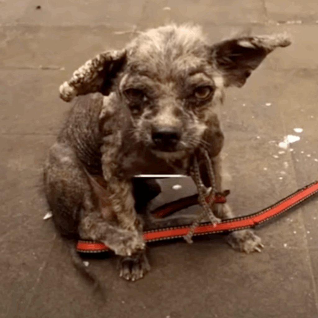 A heartbreaking scene unfolded on the city streets when a passerby discovered a severely neglected and abandoned puppy. The tiny dog, later named Benji, was found exhausted, nearly hairless, and covered in open wounds caused by a severe skin condition. Clearly, Benji had not eaten for days and was on the brink of collapse.