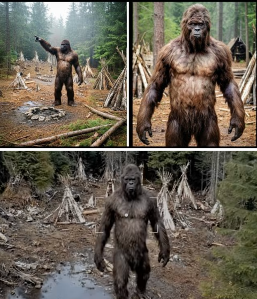 I turned slowly. Ten feet away stood a massive male Bigfoot, easily eight and a half feet tall, muscles rippling under fur, eyes intelligent and curious. He wasn’t aggressive, but he wasn’t letting me go. Three more Bigfoot appeared, surrounding me. One gently took my camera, another grabbed my backpack. I was guided into the clearing, treated as a guest—offered water, food, a seat by the fire.