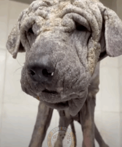 On Tuesday, the call finally came—Walter had been found and rescued. His condition was heartbreaking: he suffered from severe scabies, mange, parasites, and his bones were visible beneath his skin. He was rushed to the vet, barely clinging to life.
