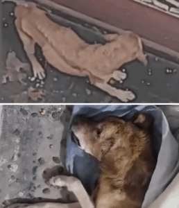 In a quiet neighborhood, a distressing image sent by a concerned neighbor sparked a chain of events that would save a life. The picture showed a dog, intentionally locked up and starved by its owner, lying helplessly on the ground like a discarded rag. This dog, later named Angel, was desperately calling out to the very person responsible for its suffering, hoping in vain for the door to open.