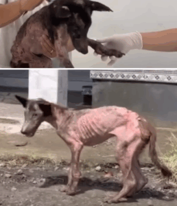 Despite his heartbreaking condition, the dog—later named Kibo, meaning “hope” in Japanese—showed a gentle, loving spirit. He wagged his tail at every gentle touch and clung to the rescuers for comfort. The team was deeply moved by his will to survive. They immediately began treating his bacterial skin infection and extreme malnutrition with antibiotics, anti-inflammatory medication, and IV fluids. Kibo was so weak he could only eat small portions at a time, but he never gave up.