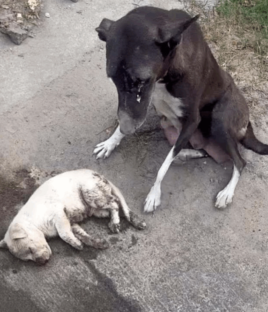 When rescuers arrived, they found the puppy’s mother faithfully by her side, refusing to leave. The mother dog, her eyes full of pain, approached the rescuers, trembling and begging for help. The team rushed the injured puppy to the veterinarian, hoping they weren’t too late.