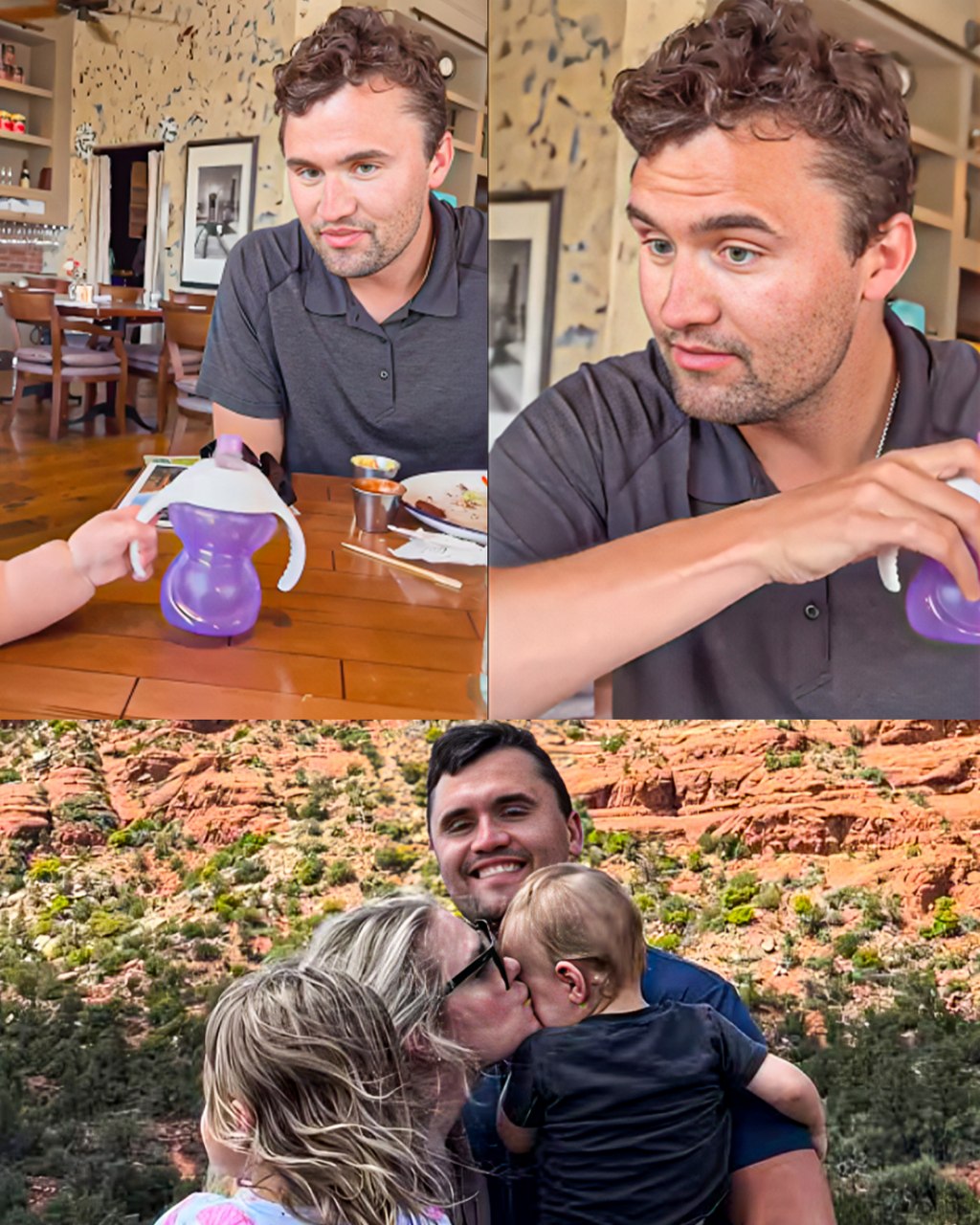 The screen flickered to life and displayed a tender, private scene: Charlie in the living room, kneeling on the floor, lifting his young daughter into his arms. Her laughter rang out bright and pure as he whispered something soft in her ear and kissed her cheek. The chapel shifted — politics, public roles, and ritual receded — leaving only a father’s love and a child’s joy.