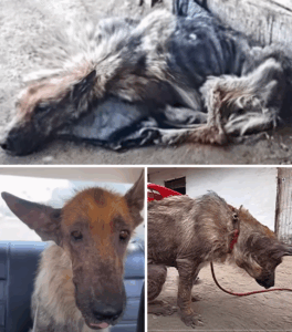 On a rainy day, Bella’s story began—a story of heartbreak, resilience, and ultimate triumph. Found curled up on the cold, wet ground, Bella was a shadow of the dog she was meant to be. Skinny and frail, her body was covered in wounds, and her eyes were empty, reflecting the pain and suffering she had endured.