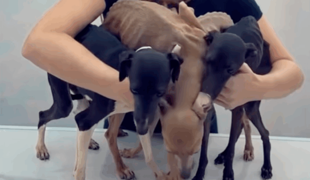 Veterinarians were stunned by the dogs’ condition, stating they had never seen such severe cases of malnutrition. Immediate treatment began, and the dogs were hospitalized for round-the-clock care. The team named them Shorty, Florinda, Bono, Jalak, Rafael, Mabel, and Shaka.