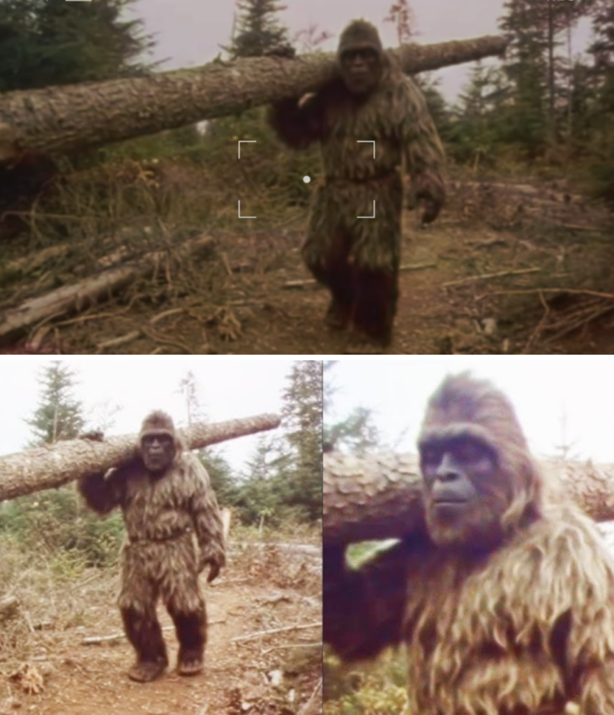 Three days later, my hidden cameras delivered. Clear footage: a massive, shaggy Bigfoot, at least eight feet tall, carrying a stripped tree trunk like it weighed nothing. Over several hours, it made trips deeper into the forest, hauling logs with purpose. Mapping its route, I realized it was heading toward a remote, overgrown part of the woods.