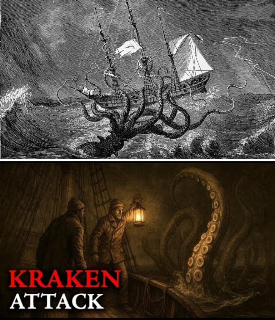 That night, the glow returned, circling the hull in bright, pulsing bands. The ship rocked with pushes from below. The bow lifted and slammed down, arms rose and tore at the rigging, one wrapping the foremast and squeezing until it cracked. Men hacked at the limbs, lances and axes flying. Sutter was swept overboard by a sweeping arm, lost to the sea.