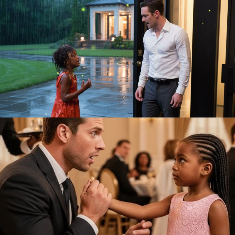 The rain fell hard against the city streets, drumming a relentless rhythm on the glass windows of Blake Industries. Inside, the marble lobby gleamed under golden lights, and the security guards barely glanced up as a small figure approached the front desk. She couldn’t have been more than seven—thin arms wrapped around herself, dark hair plastered to her cheeks, eyes wide and terrified.