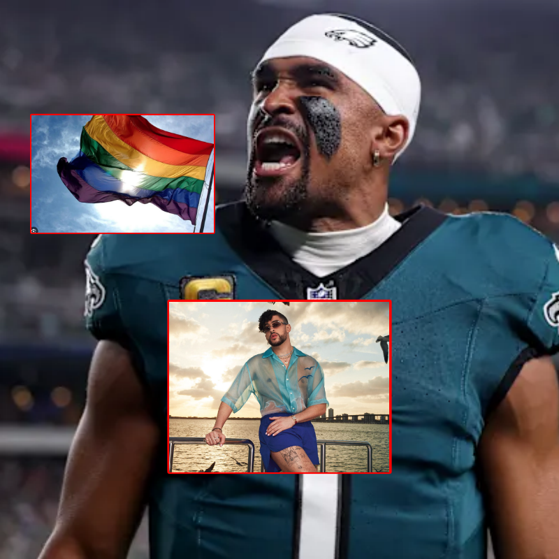 The National Football League is facing an unprecedented storm as fans, players, and commentators clash over the upcoming Super Bowl halftime show. The controversy centers on the league’s decision to feature Puerto Rican superstar Bad Bunny—a global icon known for his flamboyant style and outspoken support for LGBT rights—sparking outrage among traditionalist fans and even some players. The result: a nationwide boycott campaign, explosive social media debates, and a growing call for an “American artist” to headline the event. As tensions escalate, Philadelphia Eagles quarterback Jalen Hurts has delivered a scathing attack on the NFL, further fueling the crisis.