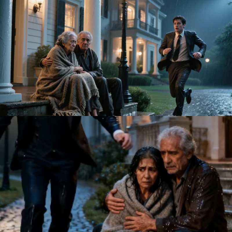 Alex lowered the umbrella instinctively, letting the rain soak him, unable to process the image. The luxury home he had bought, the home he had envisioned filled with the smell of Eleanor’s baking and George’s old-man laughter, was a cold shell. And right outside its gilded cage, under a pathetic scrap of torn blue plastic that offered minimal defense, were THEY. His parents.