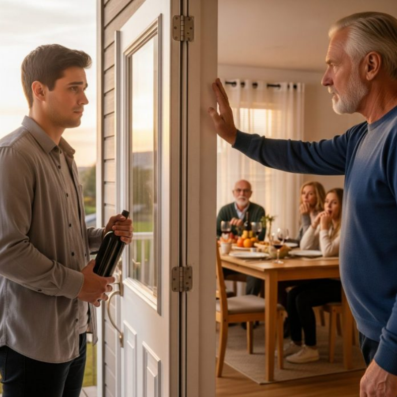 “Oh,” Mark murmured, the warmth draining from his voice as he awkwardly stepped aside, leaving the front door open just wide enough to reveal the hall chandelier and the faint, intoxicating scent of roasting turkey and sage stuffing.
