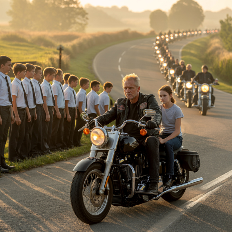 They spent the rest of the evening planning logistics, making sure the convoy would be silent and disciplined. They checked their polished bikes, their black leather shining, preparing for the most important mission they had faced all year: protecting one little girl from the invisible cruelty of a small town.