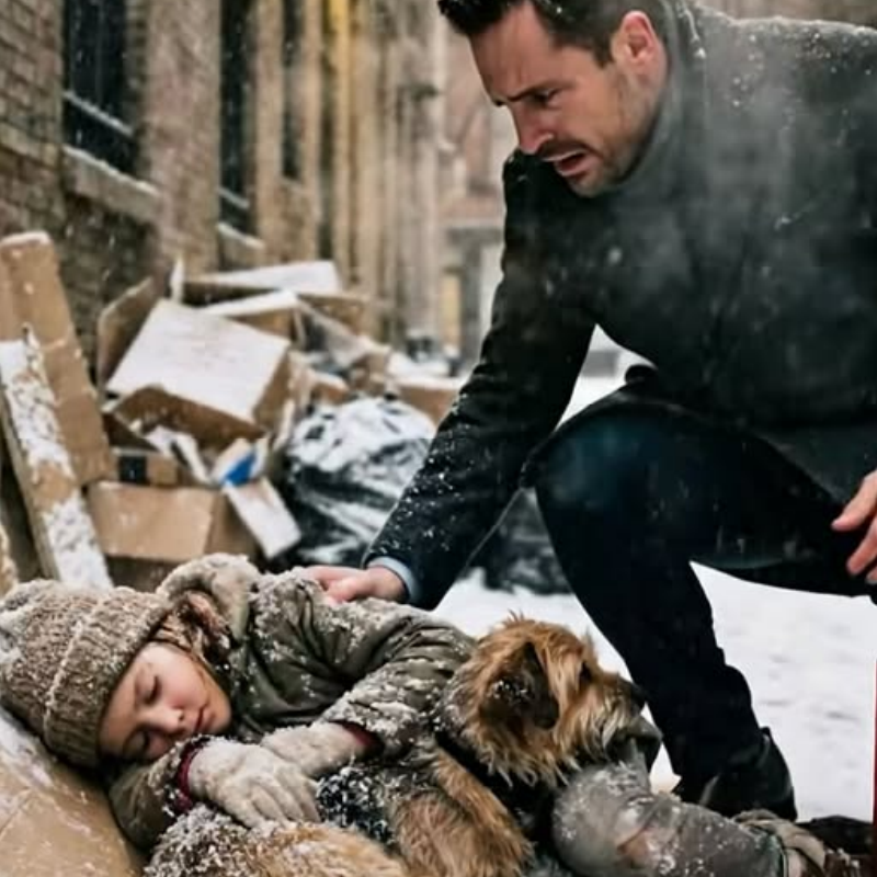 There, wedged between two metal dumpsters, away from the worst of the wind, was a small, colorful shape. A little girl—no older than seven—lay on a heap of wet, soggy trash. Her cheek was pressed against a soggy cardboard box, her small fingers knotted tightly into the fur of a dog shaking violently from the cold.