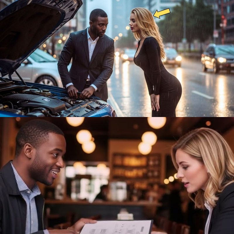 The rain poured down on Chicago’s financial district as Alexander Davis, a struggling graphic designer, rushed to the most critical job interview of his life at Sterling Corporate Solutions. But when he stopped to help a distressed woman whose sleek black sedan had broken down, he missed his appointment, sacrificing his best chance at stability. His kindness, however, set a powerful chain of events in motion. The woman, Elena Rodriguez, turned out to be the CEO of Sterling. When Alex finally got his interview, the discussion wasn’t about his portfolio, but about his character, leading to a shocking proposal that challenged all assumptions about love, class, and corporate power.