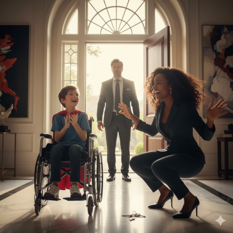 The sharp noise echoed through the living room, a metallic gunshot that shattered the magic instantly. Leo stopped laughing. His body recoiled, shrinking back into his wheelchair, his small shoulders immediately slumping. His arms dropped heavily into his lap, and his gaze fixed once again on his own motionless hands, returning to the apathetic, silent child David had known for two agonizing years.