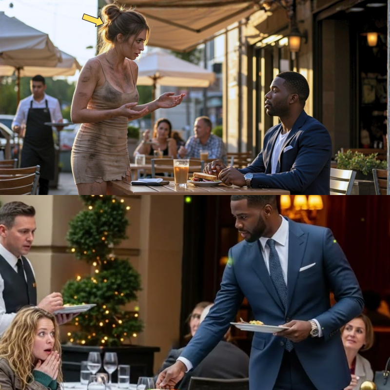 Khalil looked up to see a woman, Autumn Reed, standing just outside the patio. Her blonde hair was tangled, her clothes layered—a survival tactic he recognized. As a waiter moved to usher her away, Khalil held up a hand. He saw not a derelict, but dignity.