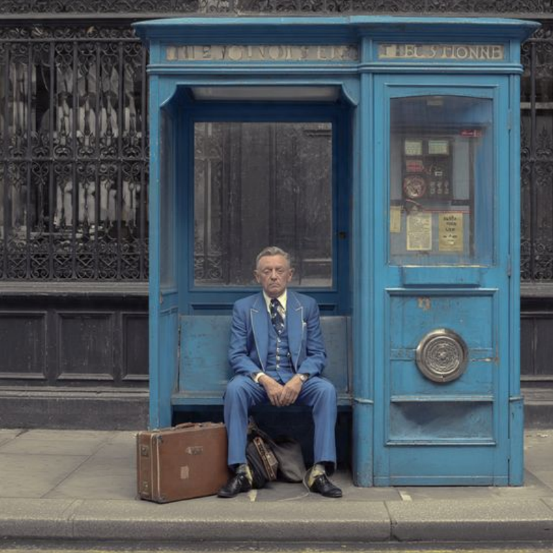 The Man at the Blue Bus Stop