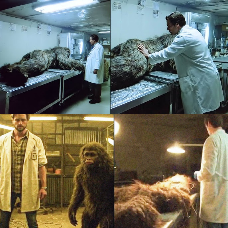 When I pushed through the doors of the main surgical suite, I stopped dead in my tracks. Laid out on the examination table was something massive, easily eight feet long, covered in thick, dark brown hair matted with blood. The face—a heavy brow ridge, a broad nose—was simultaneously familiar and utterly alien.1