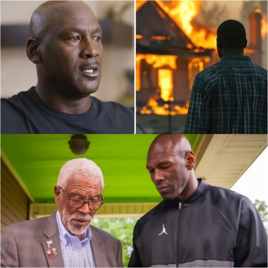 Decades later, Jimmy’s house held the memories of those days—until tragedy struck. One night, as Jimmy dozed in his recliner with his old dog Max by his side, a frayed lamp cord sparked a fire. The flames spread quickly, devouring everything: the photos, the signed basketballs, the jersey Michael had given him, even the ticket from the 1982 NCAA championship game where Jimmy watched Michael hit the winning shot.