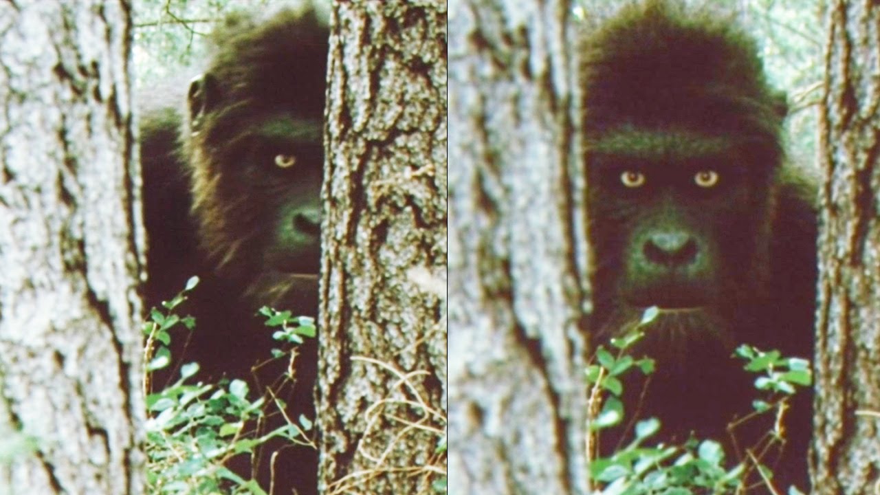 It was huge. Eight feet at least. Covered in dark fur that swallowed light. Upright like a man, but wrong in every proportion that makes a man look human—arms too long, hanging past the knees; shoulders too broad; head sitting on those shoulders with barely any neck.
