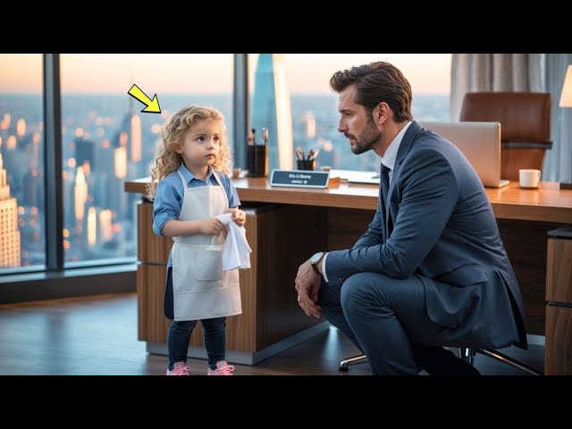 Five minutes later, his office door opened, and the most extraordinary little visitor walked in. She had golden blonde curls that tumbled past her shoulders, wearing a blue collared shirt and dark leggings. But what caught David’s attention was the white apron tied around her waist—clearly an adult size, wrapped multiple times around her small frame.