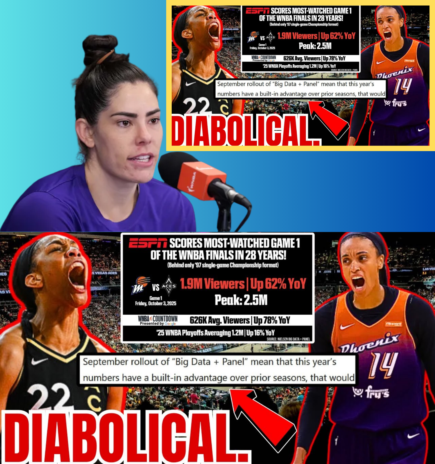 The WNBA is once again under fire — and this time, Kelsey Plum isn’t holding back. Following the release of the newest Nielsen ratings for the Mercury vs. Aces Finals, Plum has become the unexpected voice of frustration among players and fans alike, calling out what she describes as “manufactured hype” and “fake numbers meant to protect the league’s image.”
