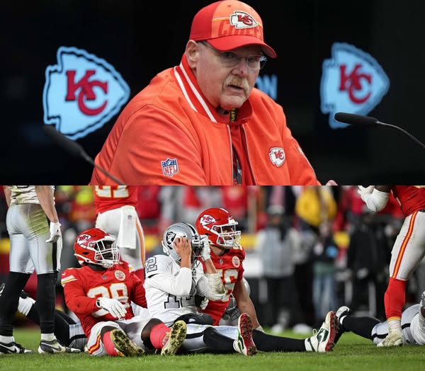 The Kansas City Chiefs had just completed a dominant performance, shutting out the Las Vegas Raiders 31–0 in front of a roaring home crowd. The scoreline suggested a flawless victory, and fans cheered as players high-fived and celebrated on the field. Yet, as the team filed into the locker room, the mood shifted. Head coach Andy Reid, usually measured and upbeat after a win, wore a stern expression.