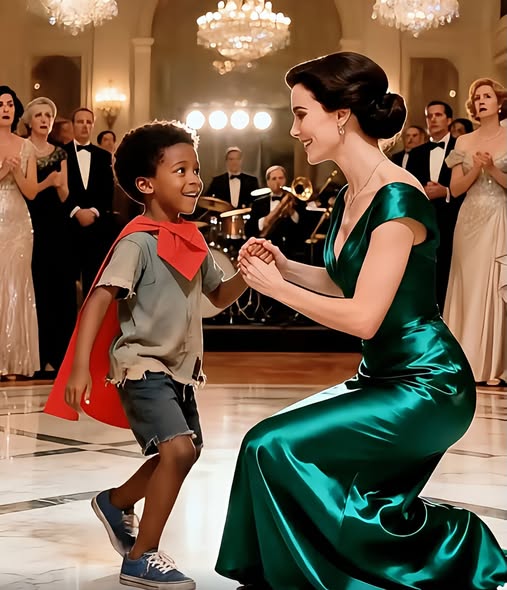 Outside the gala, on the cold stone steps, sat a young boy named Jamie. His clothes were worn, his shoes barely holding together, and his eyes watched the world with quiet hope. Every night, Jamie danced on the sidewalk for coins, dreaming that one day someone would notice him.