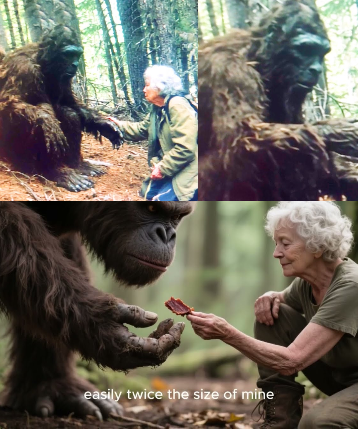 And so, the story spread: of the woman who helped a starving Bigfoot, and how compassion built a bridge between worlds that were never meant to meet.