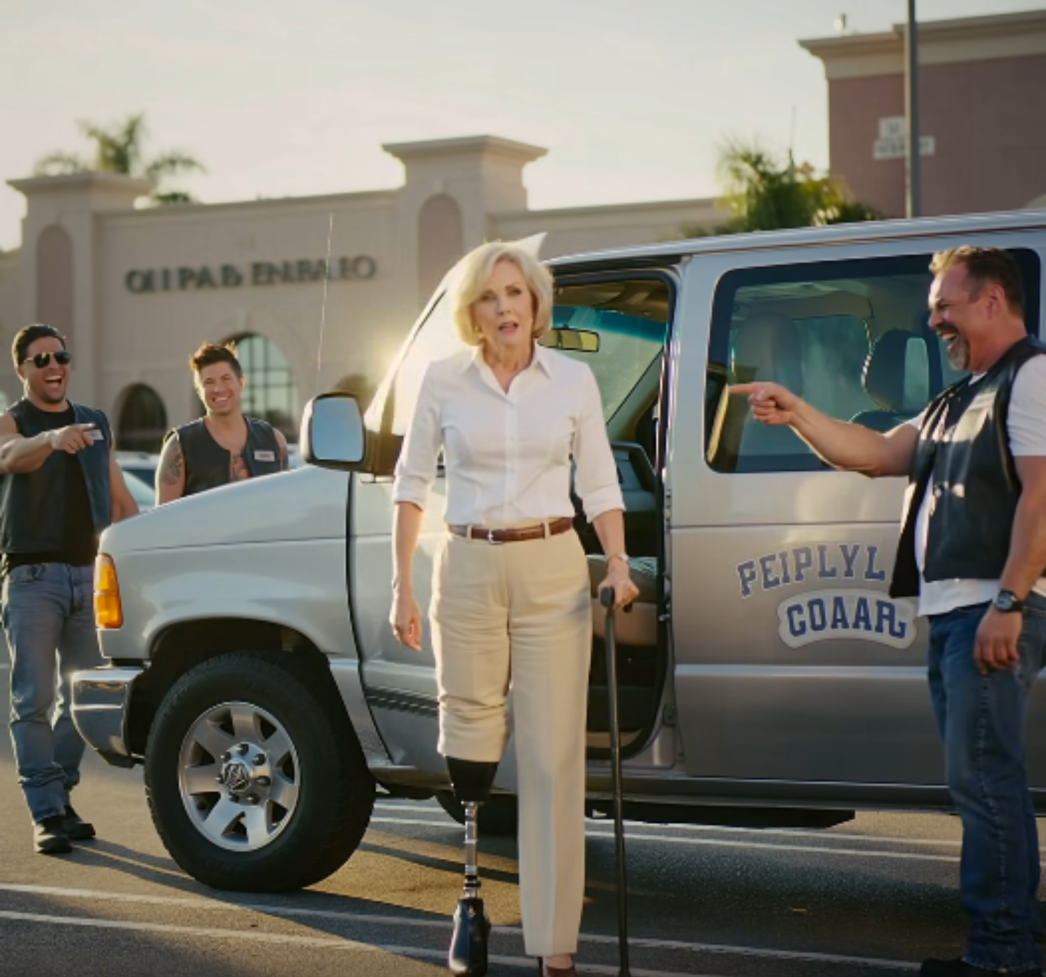 But the bikers didn’t let up. When Sarah returned to the parking lot, they surrounded her car, mocking her and making it difficult for her to leave. One even tried to snatch her cap, but Sarah stood her ground and demanded respect. The situation grew tense, and a few bystanders started recording on their phones.