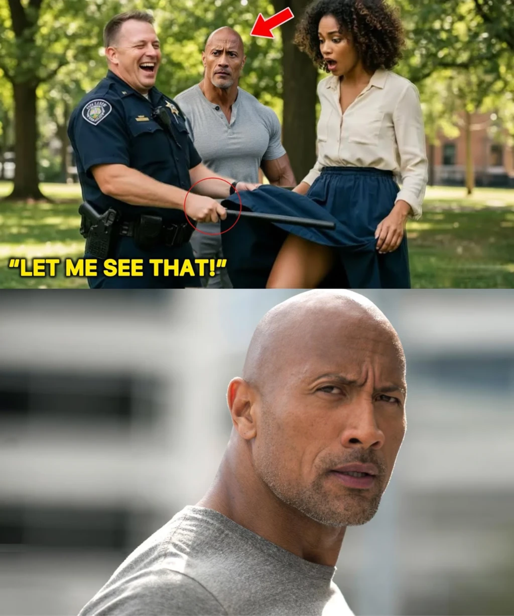 “Excuse me, officer,” The Rock said, his voice calm but unmistakably powerful. “What do you think you’re doing?”