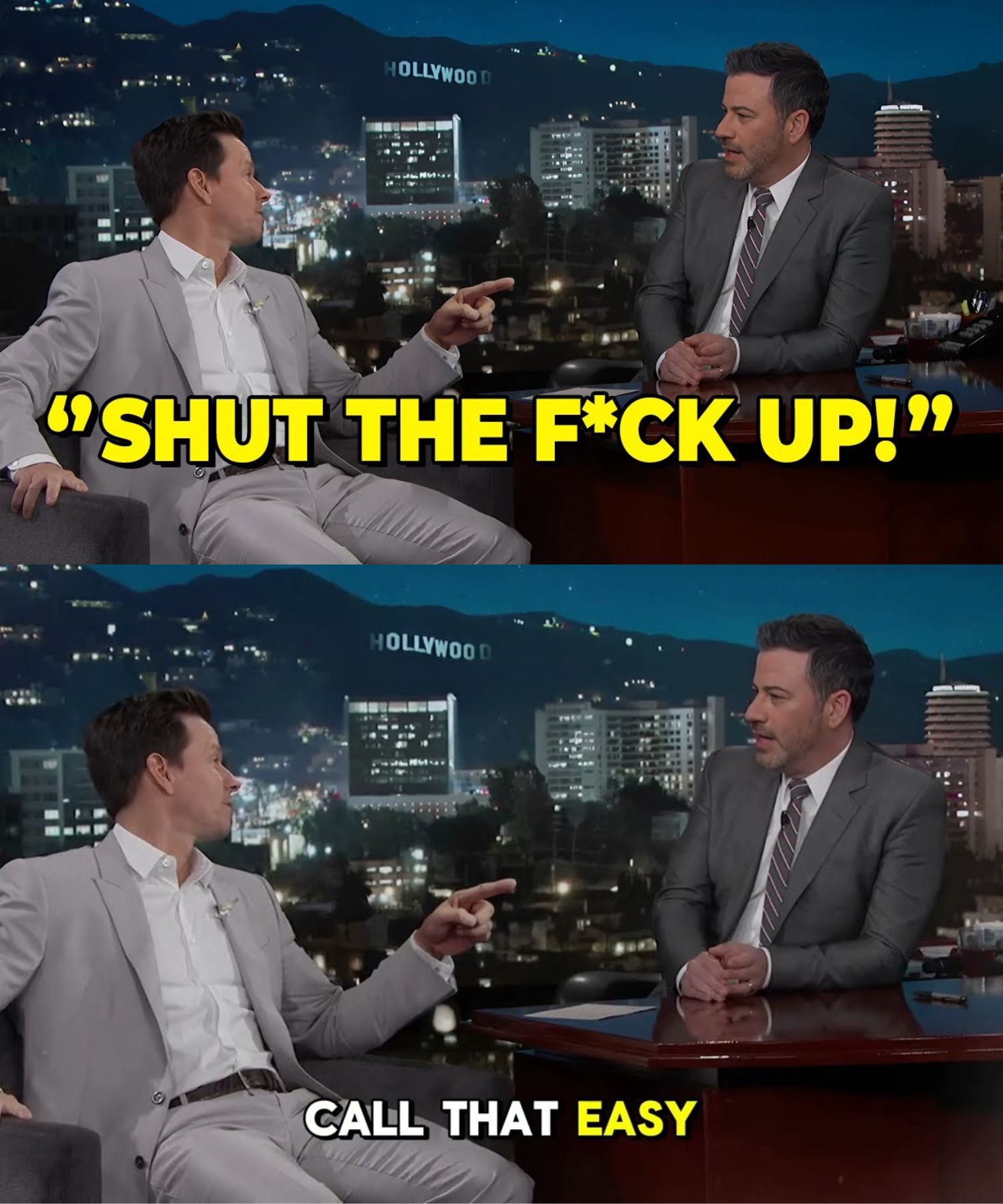 Wahlberg leaned forward, elbows on his knees, looking Kimmel dead in the eye.