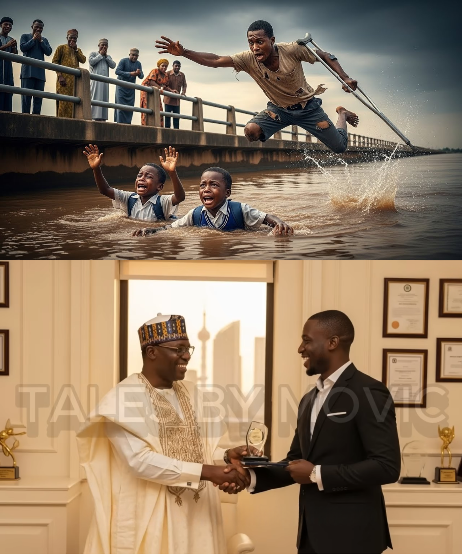 “Who saved them?” he demanded. The crowd pointed to Samuel, who stood quietly nearby, clutching his crutch and trying to steady his breath.