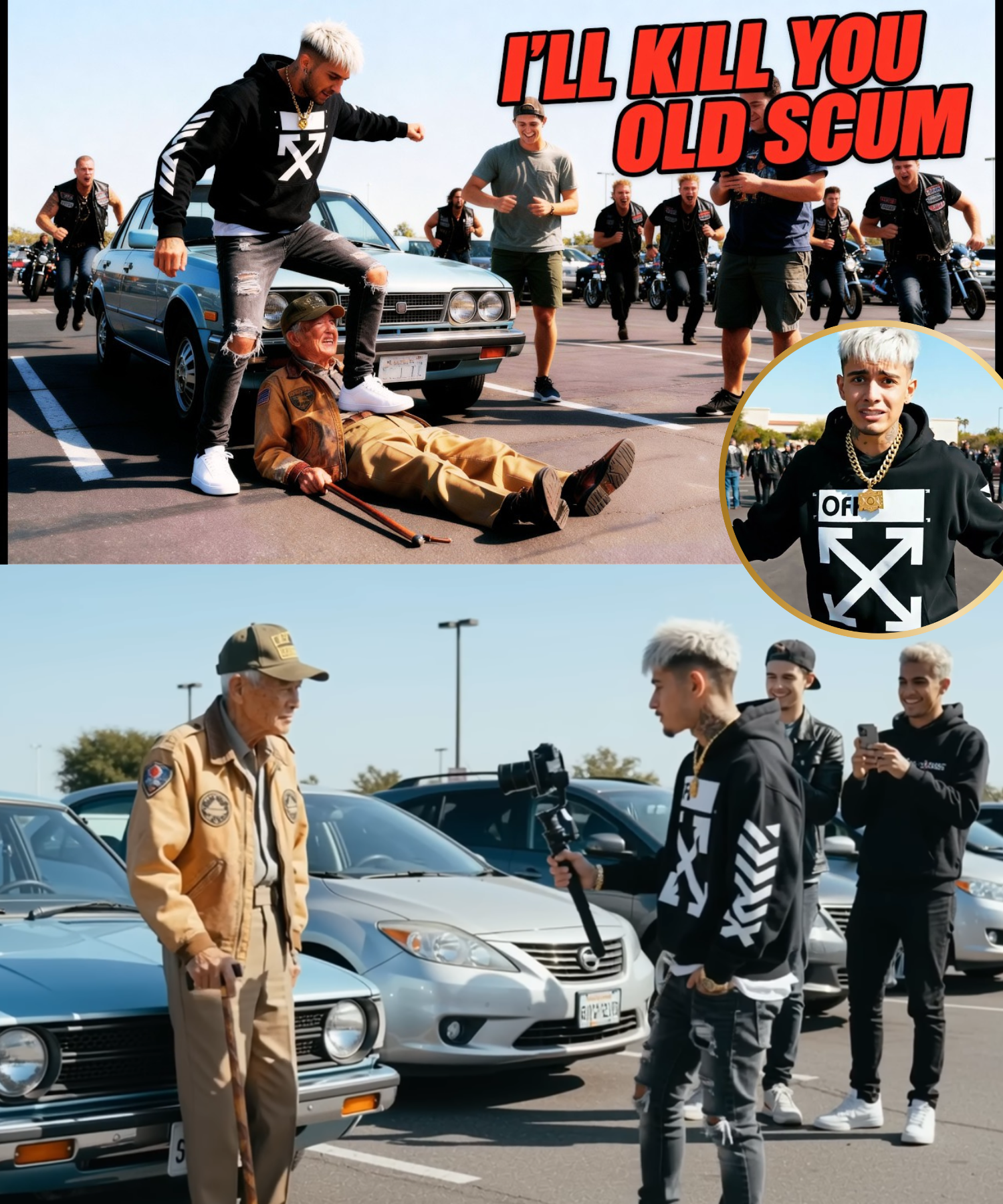The story quickly went viral, but not for the reasons Kyle intended. Instead of fame, he became a cautionary tale—proof that real-life consequences are far harsher than online ridicule. The bikers’ punishment was severe but just, and Frank’s dignity was restored by the brotherhood around him.