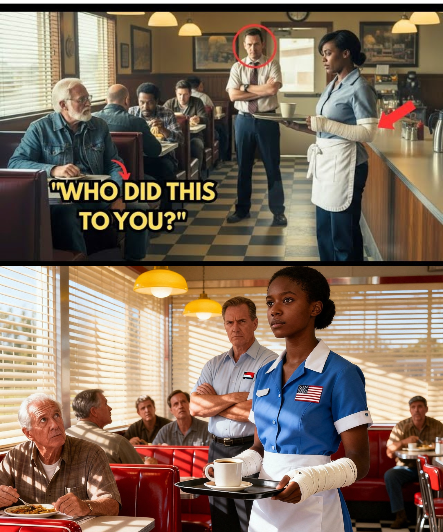 Adrian was stunned. He watched the scene—the broken arm, the overworked shifts, the hidden child—and knew he had to intervene, but he needed to know the full story. He quietly slipped out of the diner and into a back alley, pulling out his personal phone.
