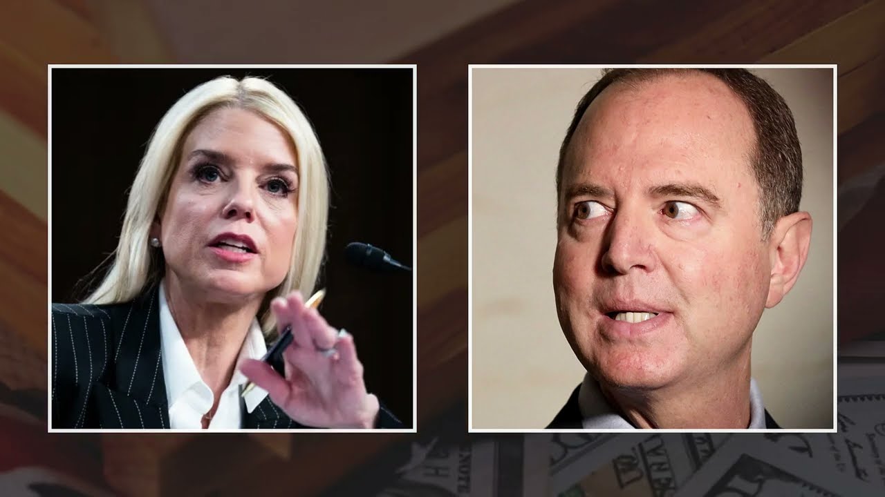 “Adam Schiff wasn’t tricked. He wasn’t duped. He was a co-conspirator in one of the most effective election manipulation campaigns in U.S. history,” Bondi said, holding up damning evidence of foreign money flowing into Biden-linked LLCs.