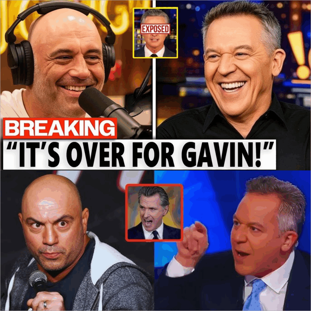 California Governor Gavin Newsom has long been seen as the golden boy of modern progressivism, a camera-ready politician with a dazzling smile and a knack for delivering climate slogans as effortlessly as he runs his hands through his perfectly coiffed hair. But on a recent live broadcast, media giants Joe Rogan and Greg Gutfeld joined forces to strip away the glossy veneer and expose what they called the “dark secret” behind Newsom’s leadership—a state in crisis, a politician in denial, and a performance so polished that it’s begun to ring hollow for millions of Californians.