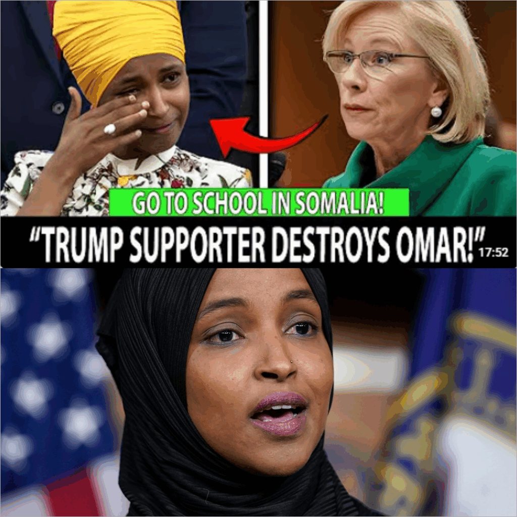 WASHINGTON, D.C. – A congressional hearing featuring former Education Secretary Betsy DeVos became the stage for a spectacular and unexpected political defeat for Representative Ilhan Omar (D-MN). Omar’s attempt to orchestrate a viral “gotcha” moment concerning alleged government corruption backfired completely when DeVos delivered a single, factual line that dismantled Omar’s entire line of questioning.
