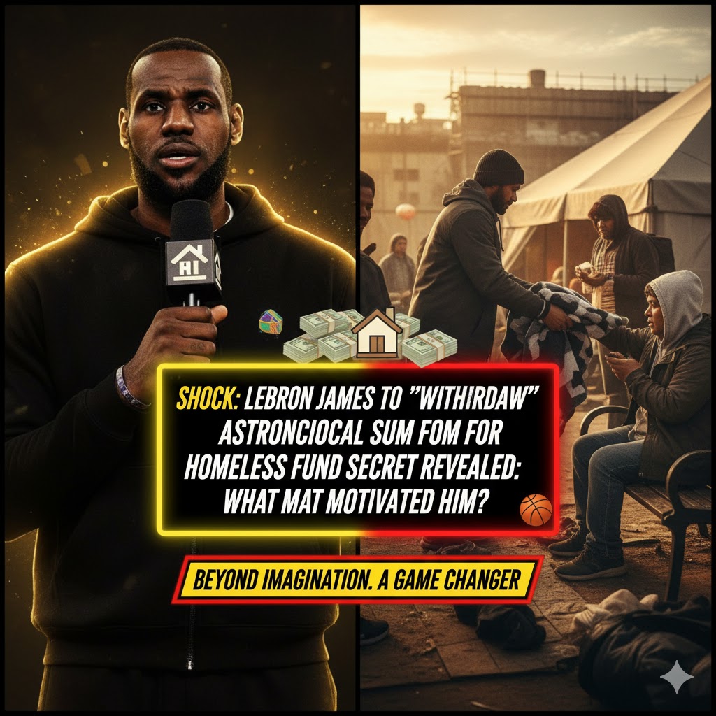 In a move that has stunned both fans and financial experts, LeBron James has reportedly announced plans to withdraw a massive portion of his personal fortune to establish an emergency fund for the homeless population across the United States. The announcement, described by one insider as “a bombshell act of compassion,” has left the sports world reeling — not just because of the staggering amount involved, but because of the personal story behind it.