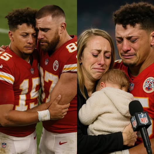 In a moment that silenced the entire football world, Kansas City Chiefs superstar Patrick Mahomes appeared before the cameras last night with tears streaming down his face. What began as a routine post-practice address quickly turned into a deeply emotional moment that no one saw coming. Standing beside his wife Brittany Mahomes, the two held hands tightly as Patrick struggled to speak through the heartbreak.