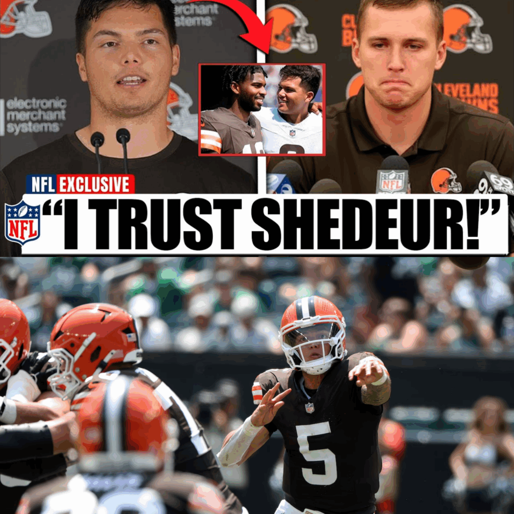 Cleveland woke up to chaos. The Browns, reeling from a humiliating loss to the Steelers, flipped their quarterback depth chart in the most controversial way yet. Bailey Zappy, the unheralded practice squad survivor, found himself thrust into the spotlight, while Shedeur Sanders—once the forgotten rookie—was suddenly fighting for relevance in his own locker room. But just as the narrative seemed set, Dylan Gabriel, the rookie starter under fire, changed everything. Instead of defending his own position, Gabriel made a bold move: he publicly backed Shedeur Sanders for QB2, igniting a firestorm across the NFL.