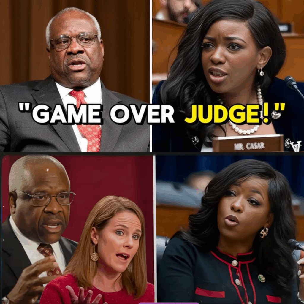 What made Crockett’s performance extraordinary wasn’t just the evidence—it was her strategy. She used the judges’ own originalist philosophy, which prioritizes the Constitution’s text and the founders’ intent, to argue that Henderson was unconstitutional. Quoting Clarence Thomas’s own writings, she pointed out the hypocrisy of upholding a decision that ignored clear constitutional text. Crockett’s calm, methodical approach left the judges with no room to maneuver. For the first time in decades, Thomas’s legendary composure cracked, and Barrett’s confident demeanor faltered.