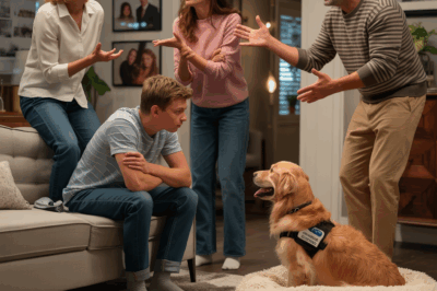 The whole family argued because the dog was sent for “psychological therapy” but the son was not. It was a…