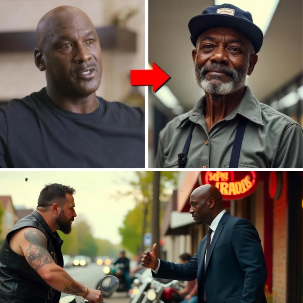 Unbeknownst to Taylor, someone was watching from inside the café—a tall, composed man enjoying a quiet cup of tea. Michael Jordan, the legendary basketball icon, was visiting the town for a rare day of peace, accompanied by his beloved dogs. He had seen everything through the window, his sharp eyes missing nothing. The café owner, recognizing the gravity of the situation, whispered to Michael, “Sir, I think that biker just made a big mistake.” Michael nodded silently and stood up, his calm demeanor radiating authority.