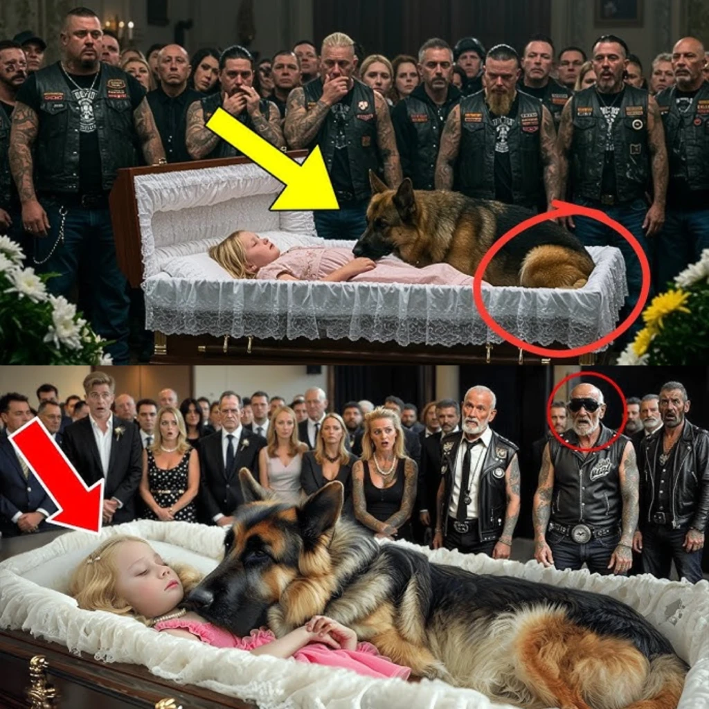 The rain fell relentlessly that afternoon at Arlington National Cemetery, soaking the uniforms of the soldiers standing at attention. Among the rows of marble headstones and the soft, mournful notes of a distant bugle, a scene unfolded that would haunt everyone present for the rest of their lives. By a small white coffin, adorned with lilies and a single stuffed bear, sat Rex—a K9 German Shepherd known for his discipline and courage. But today, Rex wasn’t the fearless military dog everyone admired. Today, he was a brokenhearted guardian, refusing to leave the side of the little girl he had loved more than life itself.