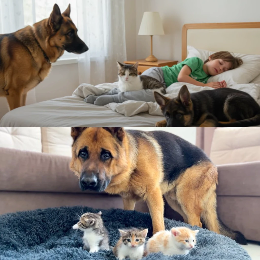 But our walk took an unexpected turn. Near the creek, Max spotted a terrified kitten stranded on a rock. Instead of charging in, he observed carefully, his protective instincts kicking in. Together, we rescued the kitten, who immediately bonded with Max. Back home, Max refused to leave her side, sharing his bed and even his favorite toys. He became her protector, gently nudging her toward her food and standing guard as she napped.