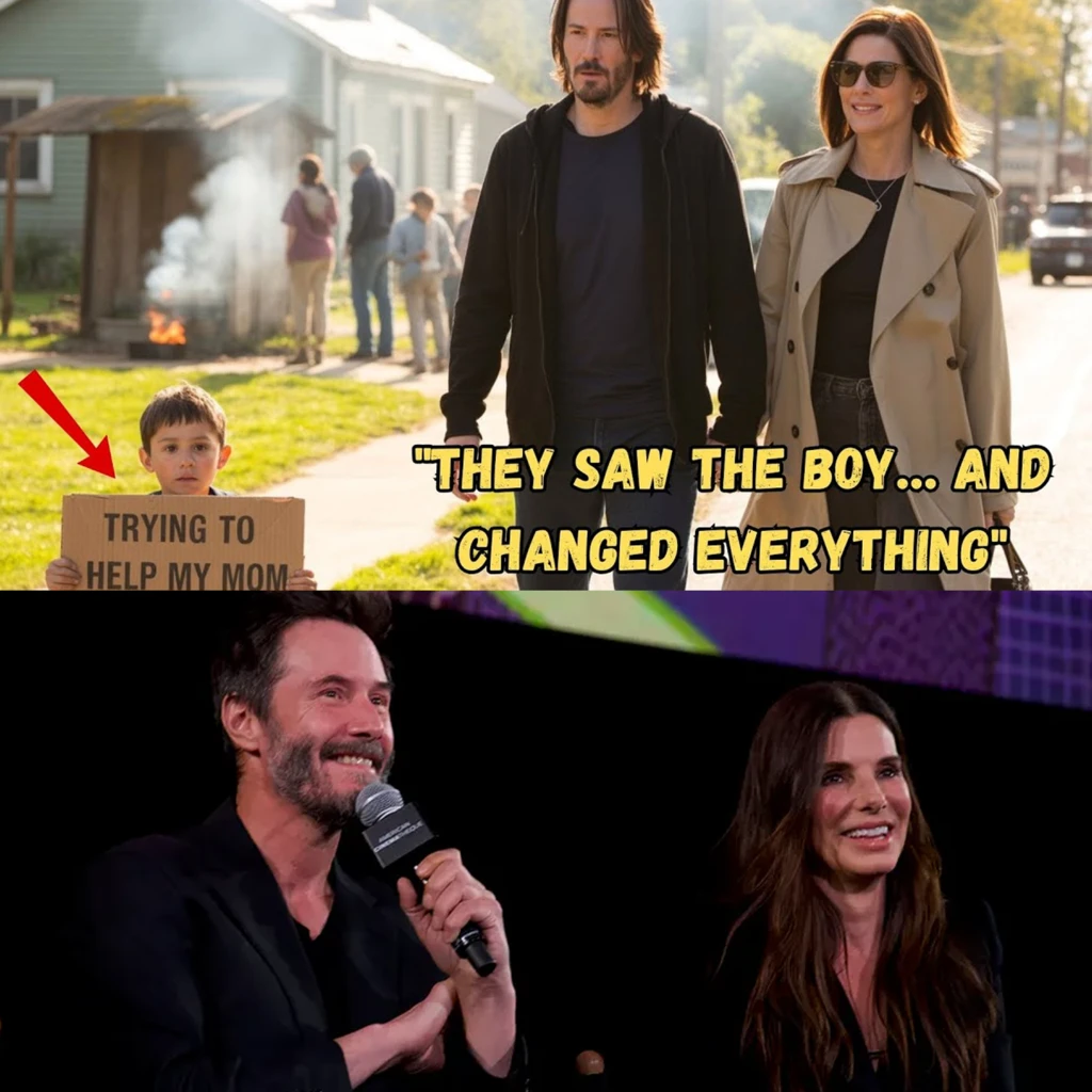 Keanu stopped first, and Sandra turned back. Keanu knelt beside the boy and asked, “Hey, what’s your name?” The boy, startled, answered quietly, “Eli.” Sandra knelt too. “Where’s your mom now?” “In the shelter down the street,” Eli replied. “She had surgery. We lost our place. I’m trying to get her to my aunt’s house, three towns away.” He handed them a crumpled paper with a number—his aunt Martha.