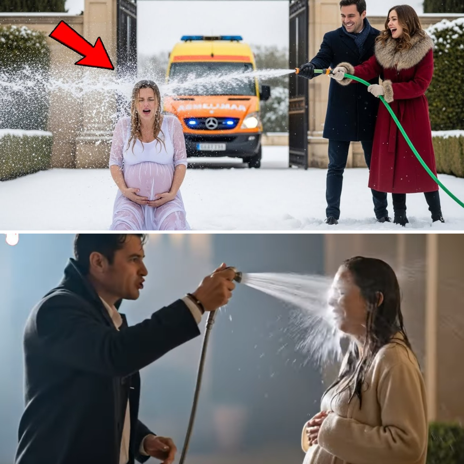 Ethan crouched beside her, not to help, but to sneer. “Get up,” he snapped, irritation in his voice. Maria tried, but her arm buckled. He sighed, annoyed, as if she were an inconvenience. The water kept pouring, the cold kept biting. Maria’s vision shrank, her world tilting. She whispered a plea to protect her baby, to hold on long enough for someone to help. But the courtyard was empty. The mansion was silent. Her final thought: she could not feel her heartbeat anymore. Then everything faded into pounding water and white light.